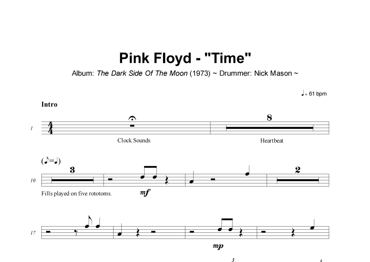 Pink Floyd《Time》架子鼓谱