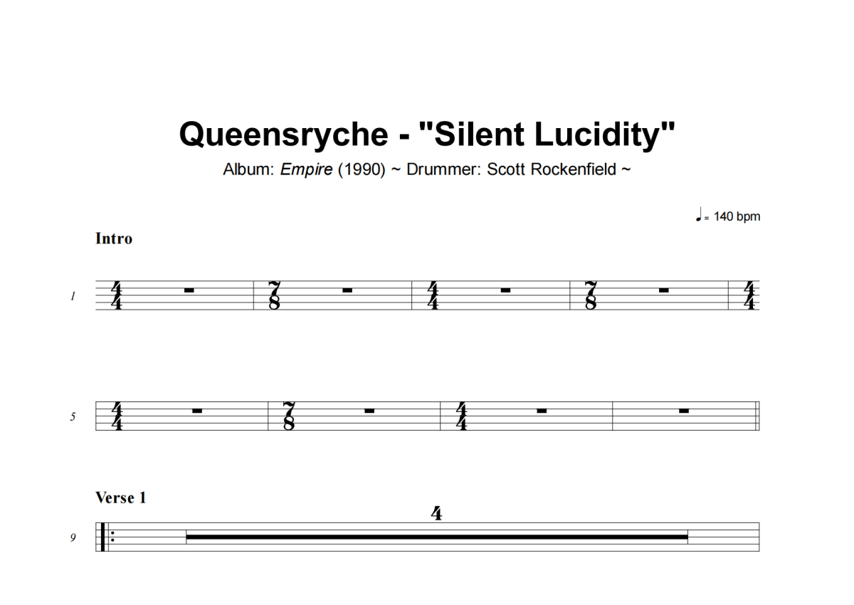 Queensryche《Silent Lucidity》架子鼓谱