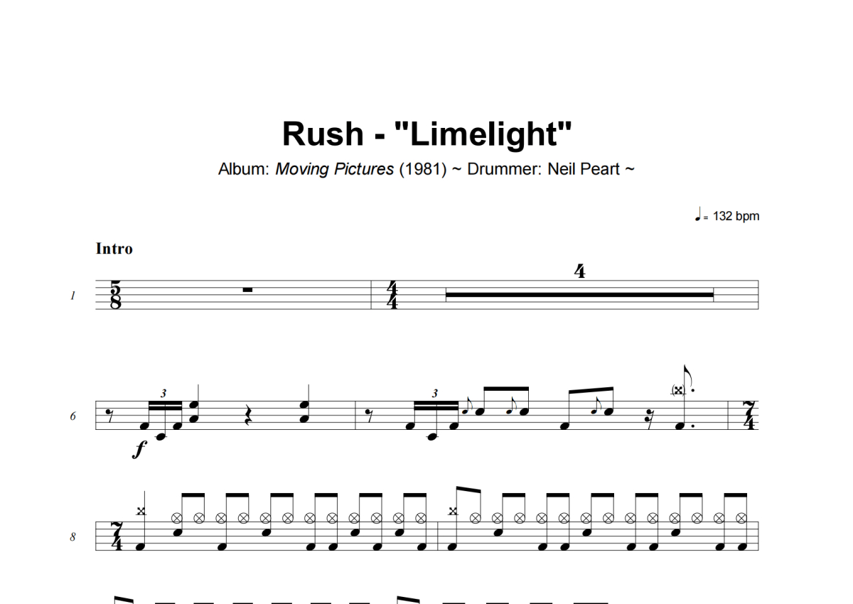 Rush《Limelight》架子鼓谱