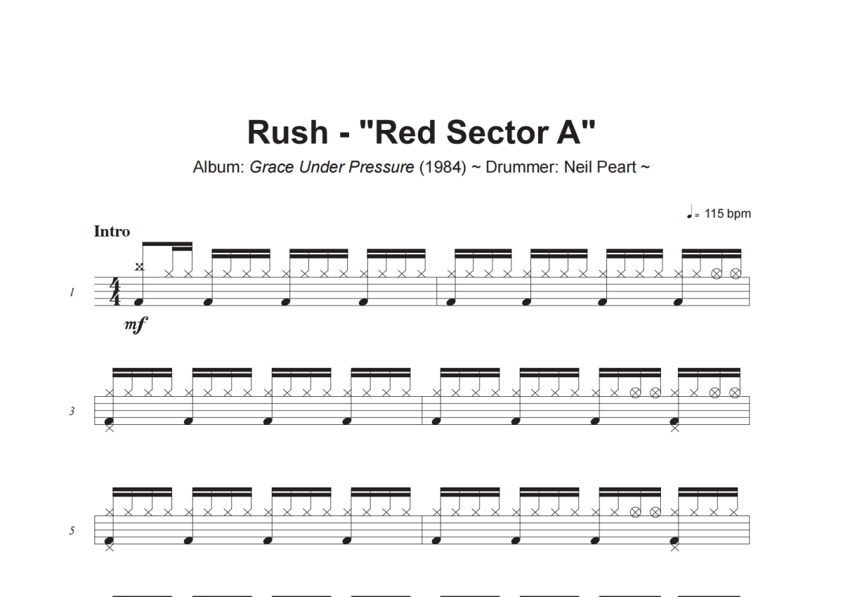 Rush《Red Sector A》架子鼓谱