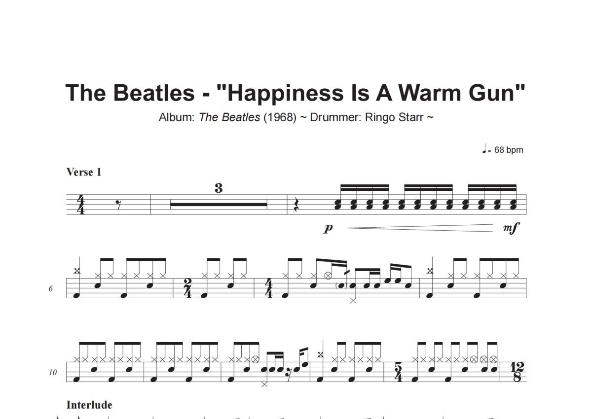 The Beatles《Happiness Is A Warm Gun》架子鼓谱