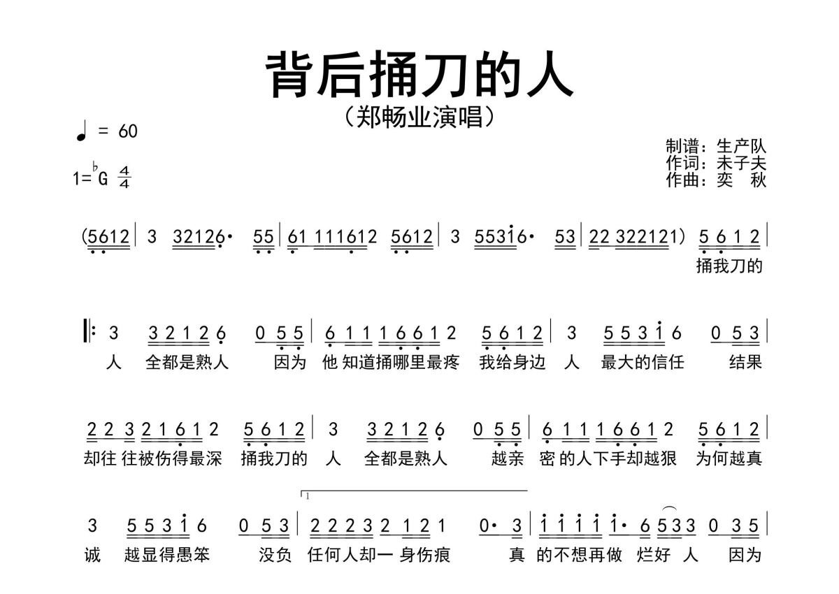 郑畅业《背后捅刀的人》简谱 - 原版简谱