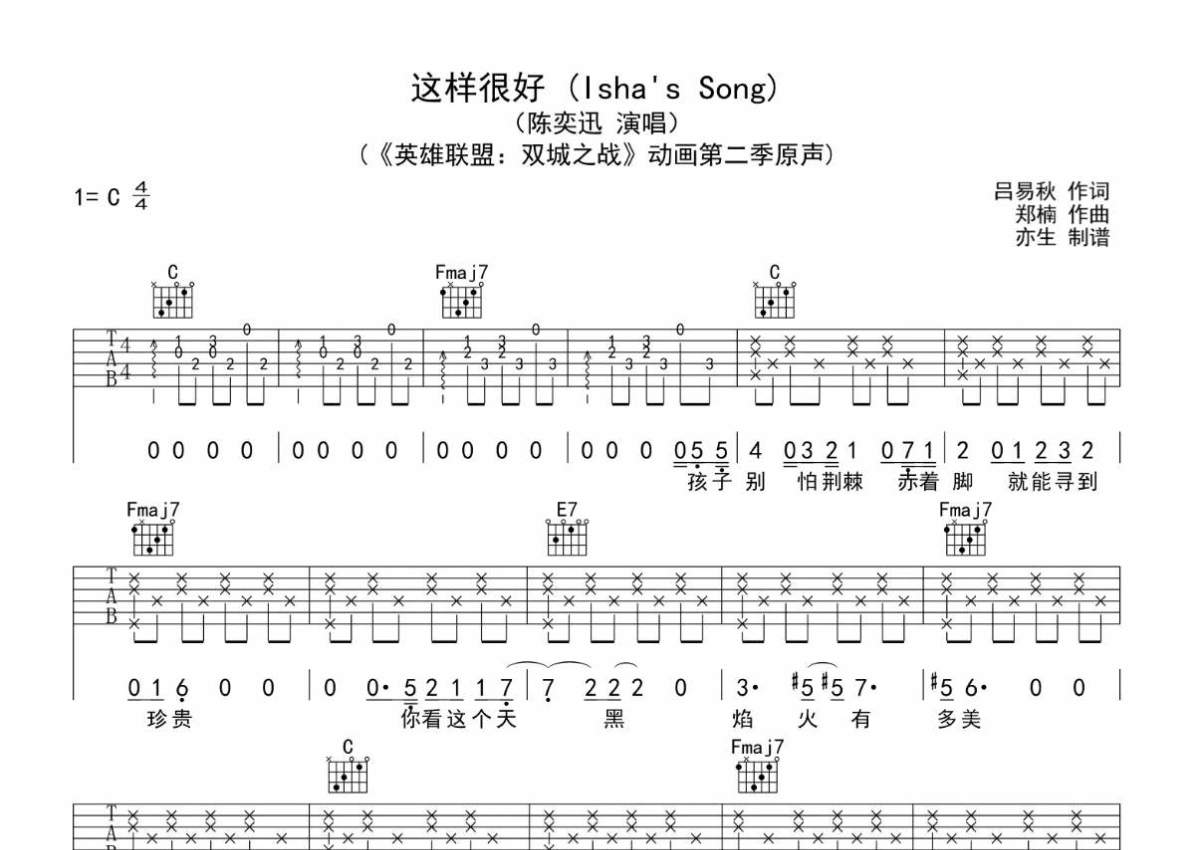 陈奕迅&双城之战&英雄联盟《这样很好》吉他谱 - C调弹唱六线谱