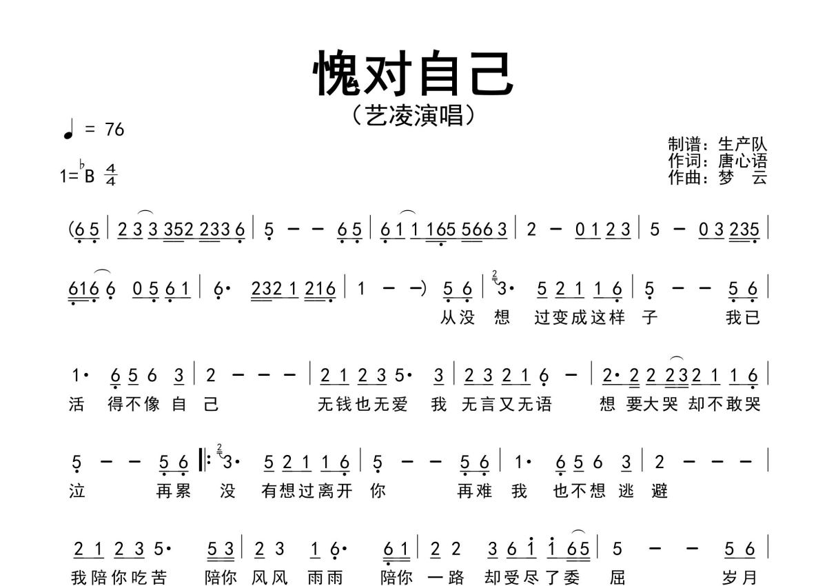 《愧对自己》是艺凌演唱的一首歌曲,原版简谱,拍号为4/4拍,歌曲速度为每分钟76拍,这份简谱共有一张高清图谱,图谱由 @生产队 编配上传艺凌演唱的歌曲《愧对自己》原版简谱,完整的前奏、间奏、尾奏solo编配。
