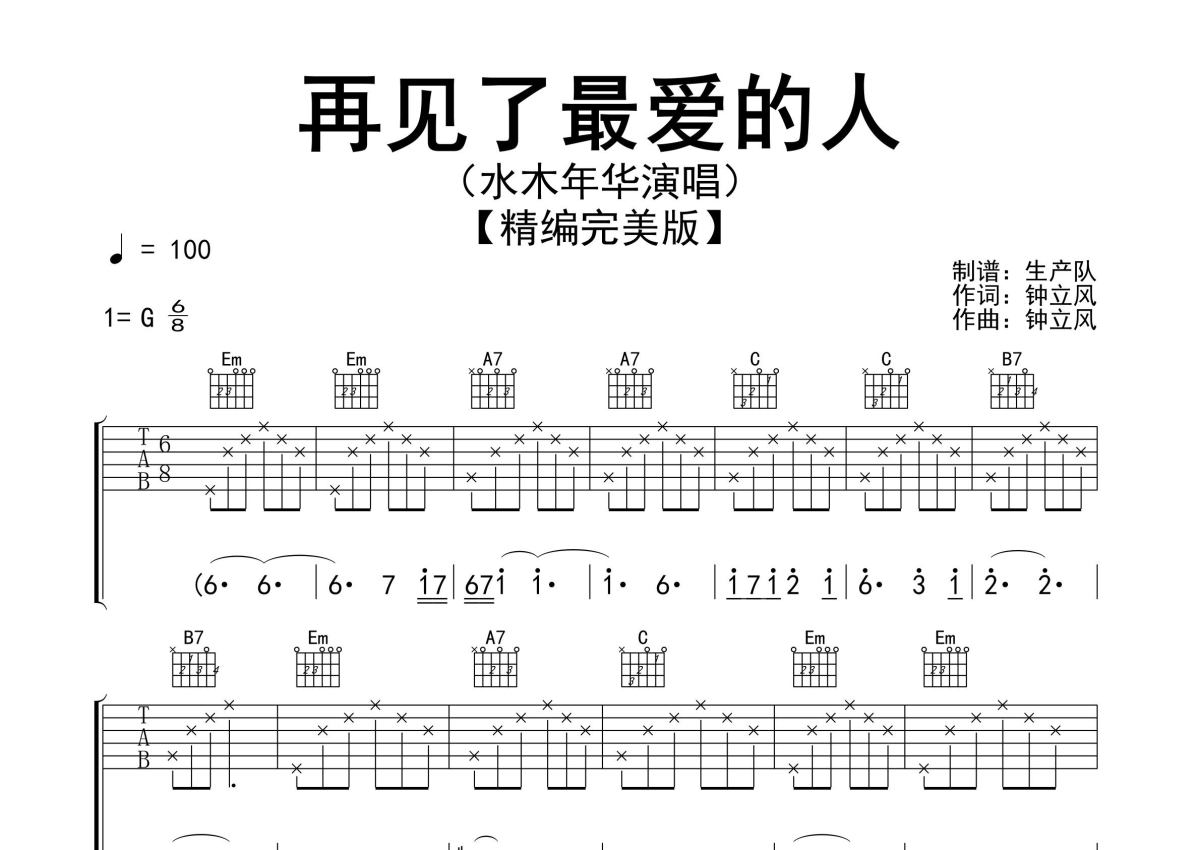 水木年华《再见了最爱的人》吉他谱 - G调弹唱六线谱 - 精编完美版