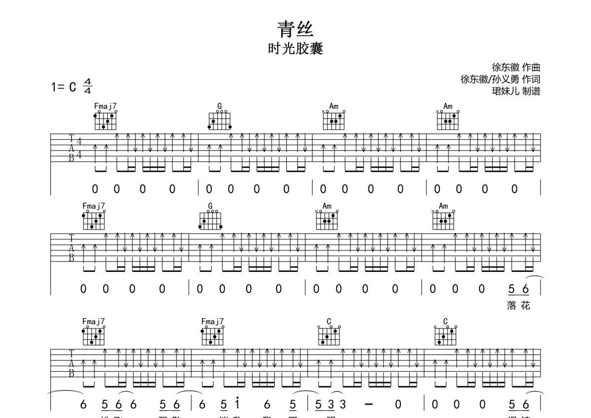 青丝吉他谱 - 时光胶囊演唱 - C调弹唱六线谱