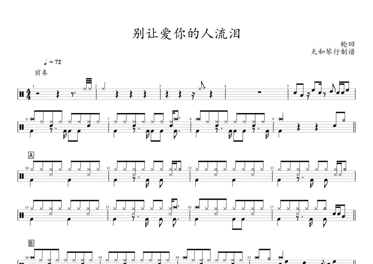 轮回乐队《别让爱你的人流泪》架子鼓谱
