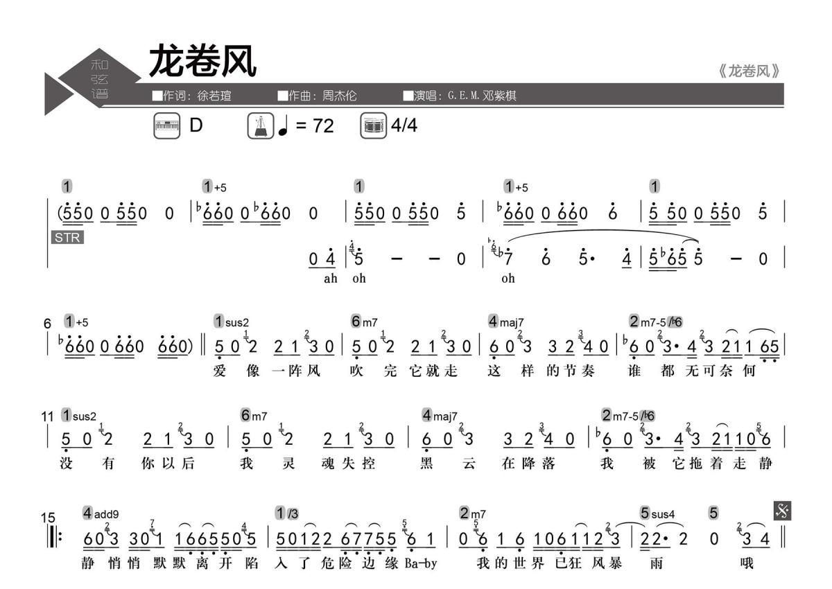 邓紫棋《龙卷风》简谱 - 数字级数和弦谱