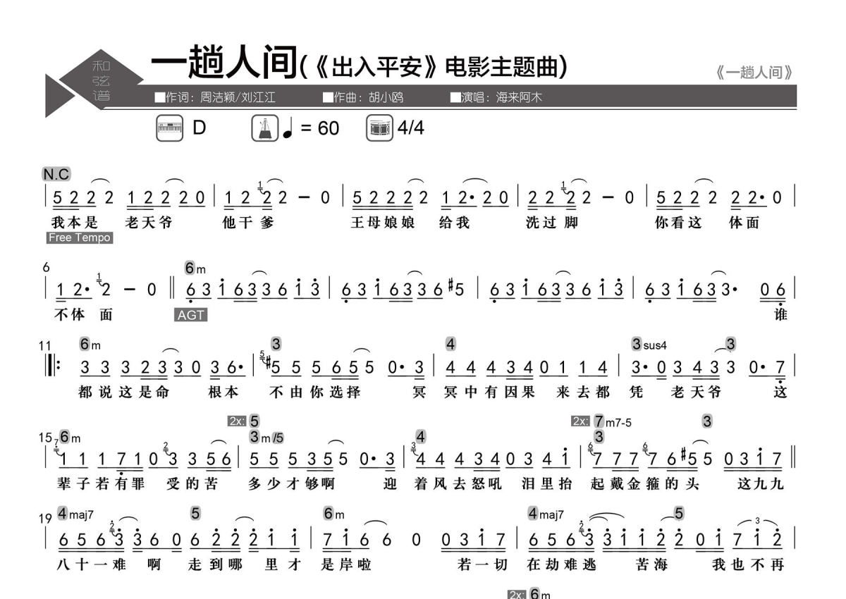 海来阿木《一趟人间》简谱 - 数字级数和弦谱