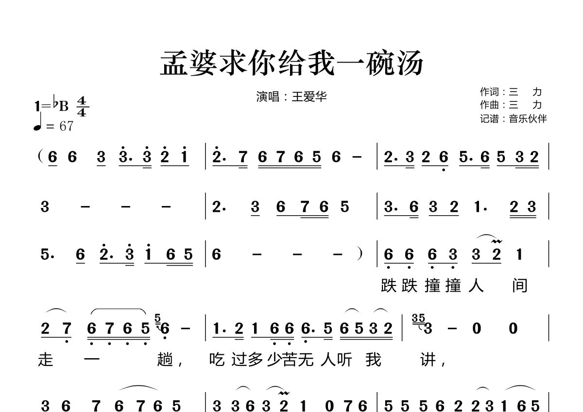 孟婆求你给我一碗汤简谱 - 王爱华演唱