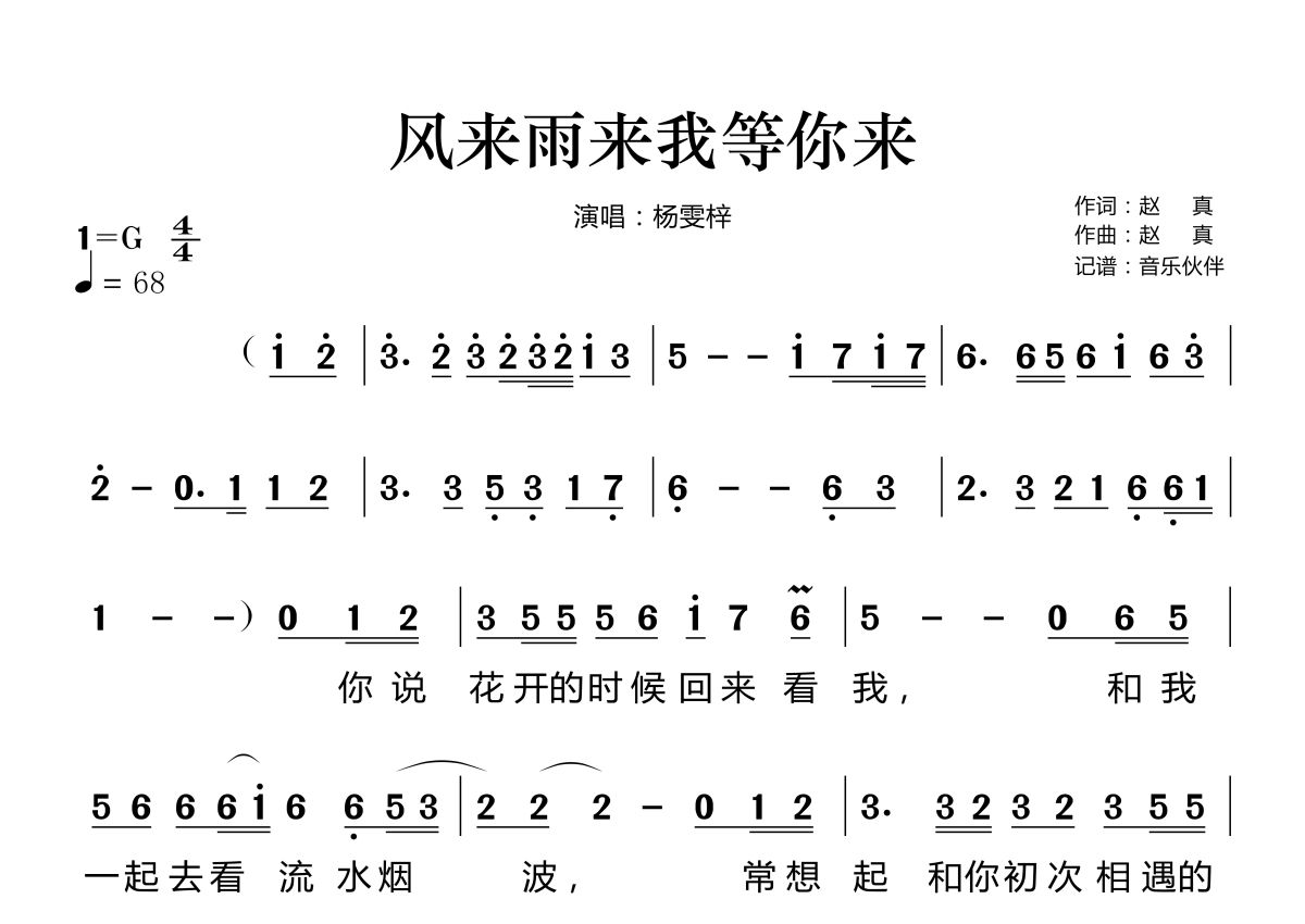 风来雨来我等你来简谱 - 杨雯梓演唱
