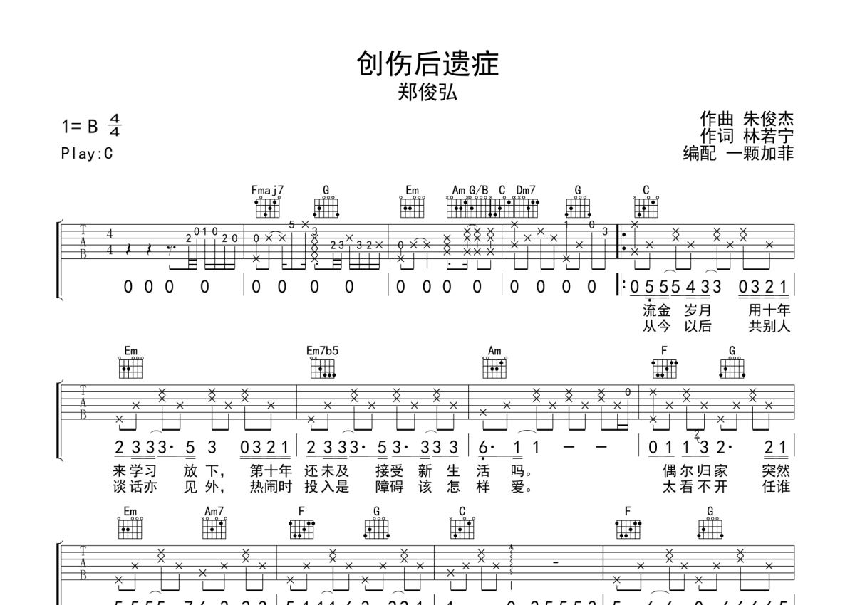 郑俊弘《创伤后遗症》吉他谱 - C调弹唱六线谱