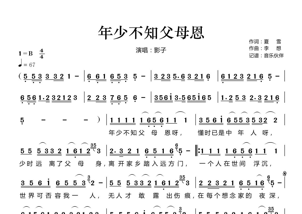 《年少不知父母恩》是影子演唱的一首歌曲,这份简谱共有一张高清图谱,图谱由 @音乐伙伴 编配上传。