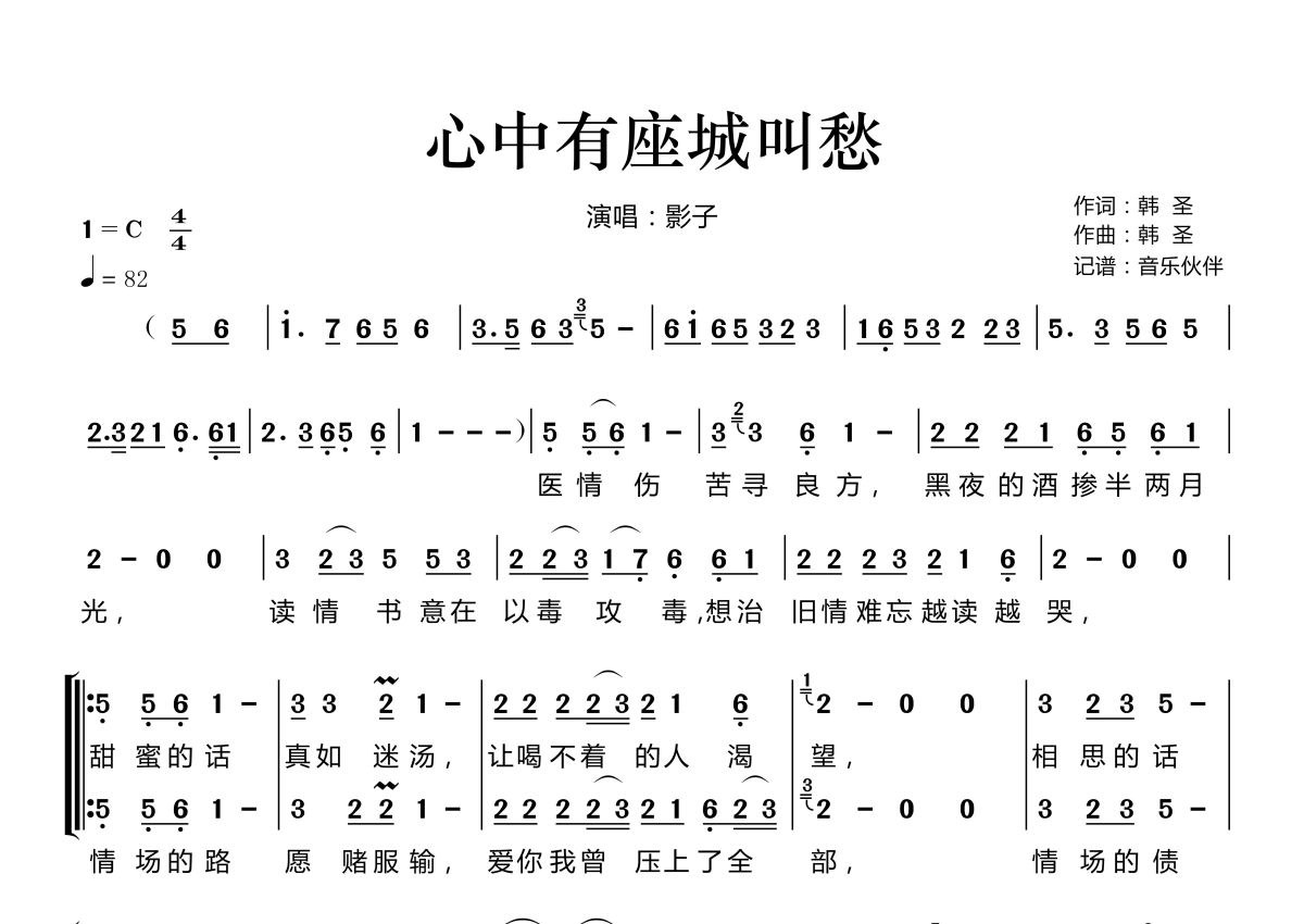 《心中有座城叫愁》是影子演唱的一首歌曲,这份简谱共有一张高清图谱,图谱由 @音乐伙伴 编配上传。