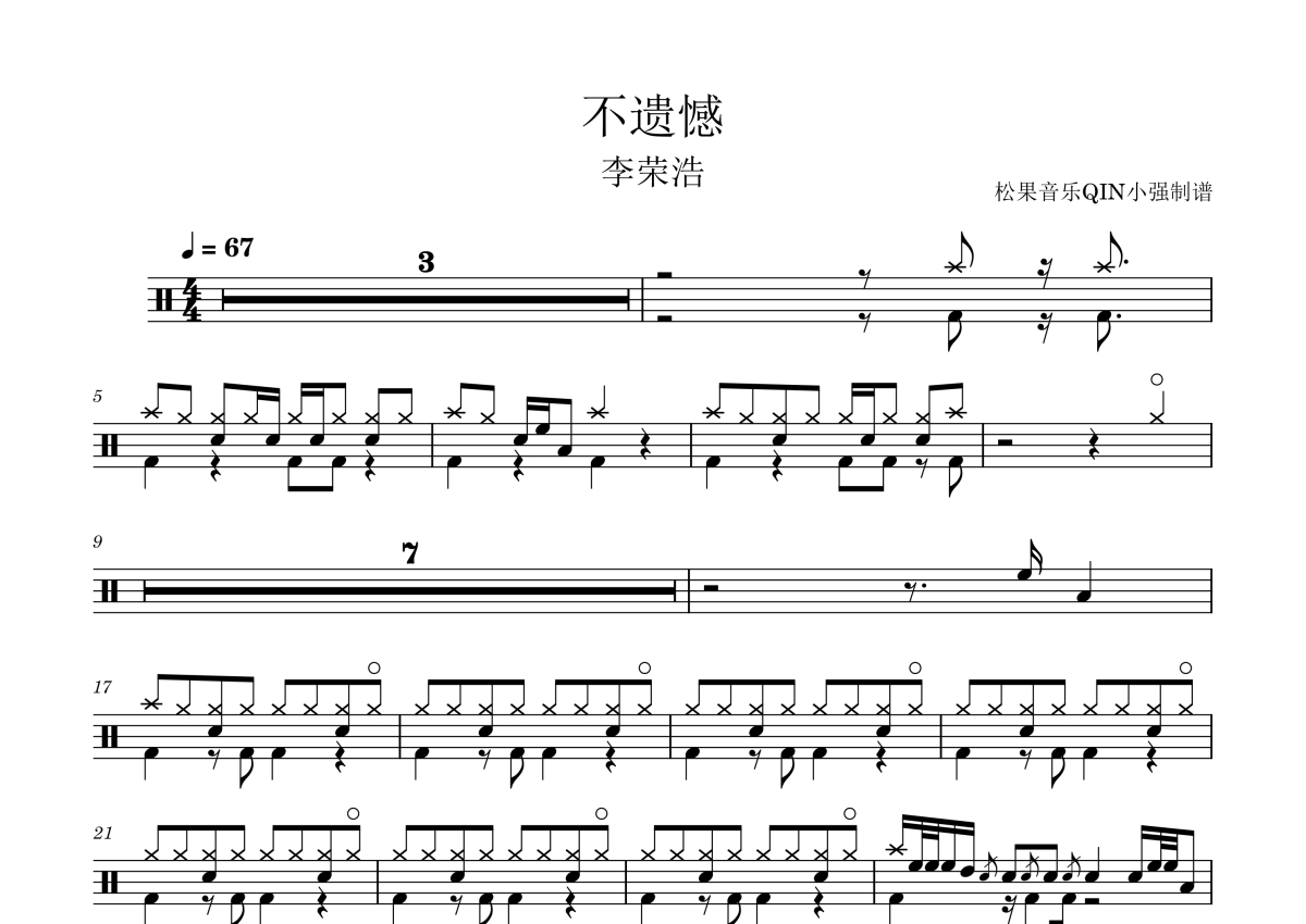 李荣浩《不遗憾》架子鼓谱