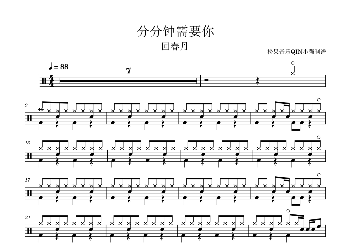 回春丹《分分钟需要你》架子鼓谱