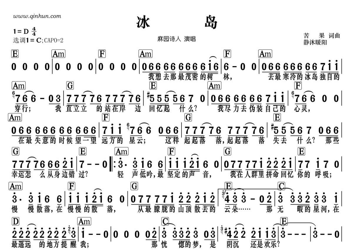 麻园诗人《冰岛》简谱 - 和弦谱