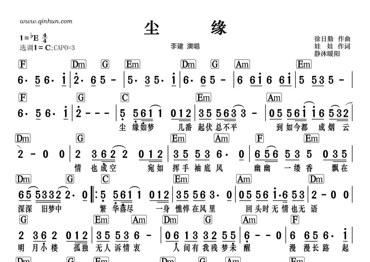李建《尘缘》简谱 - 和弦谱