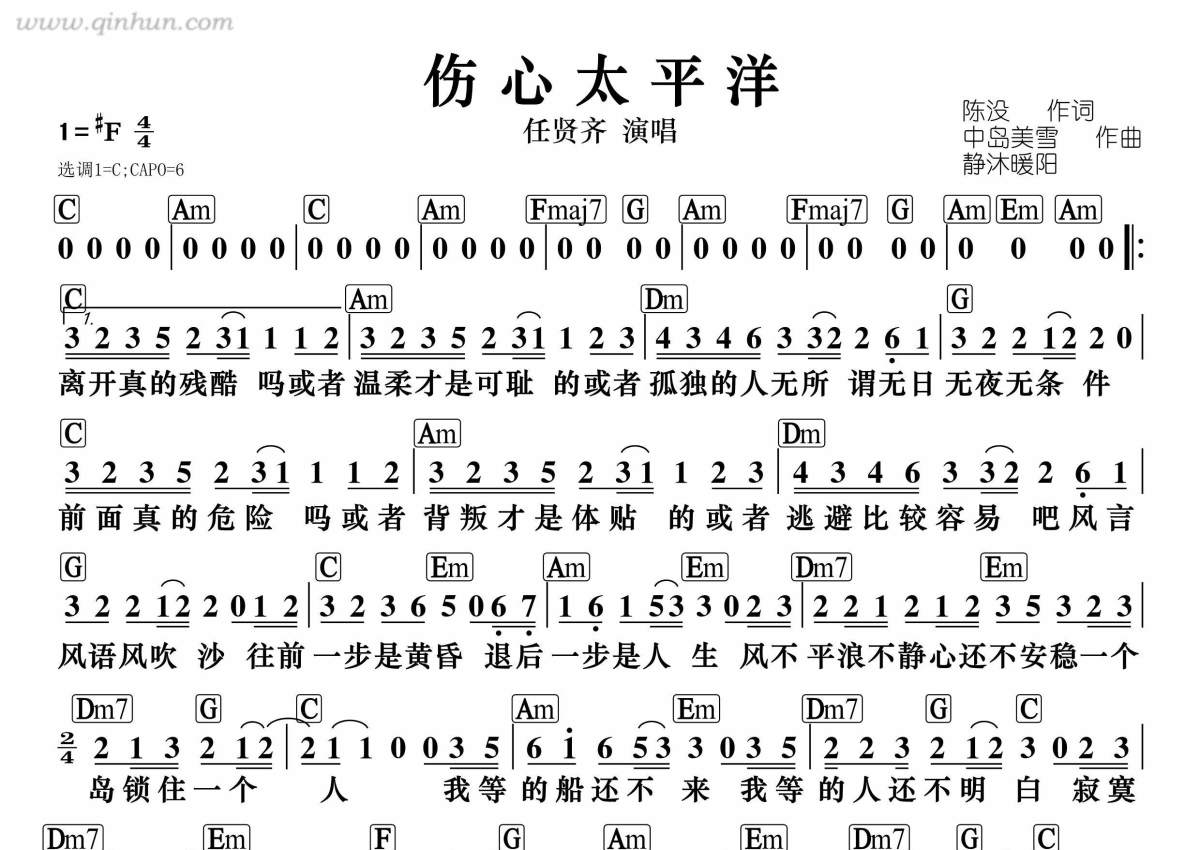 伤心太平洋简谱 - 任贤齐演唱 - 和弦谱