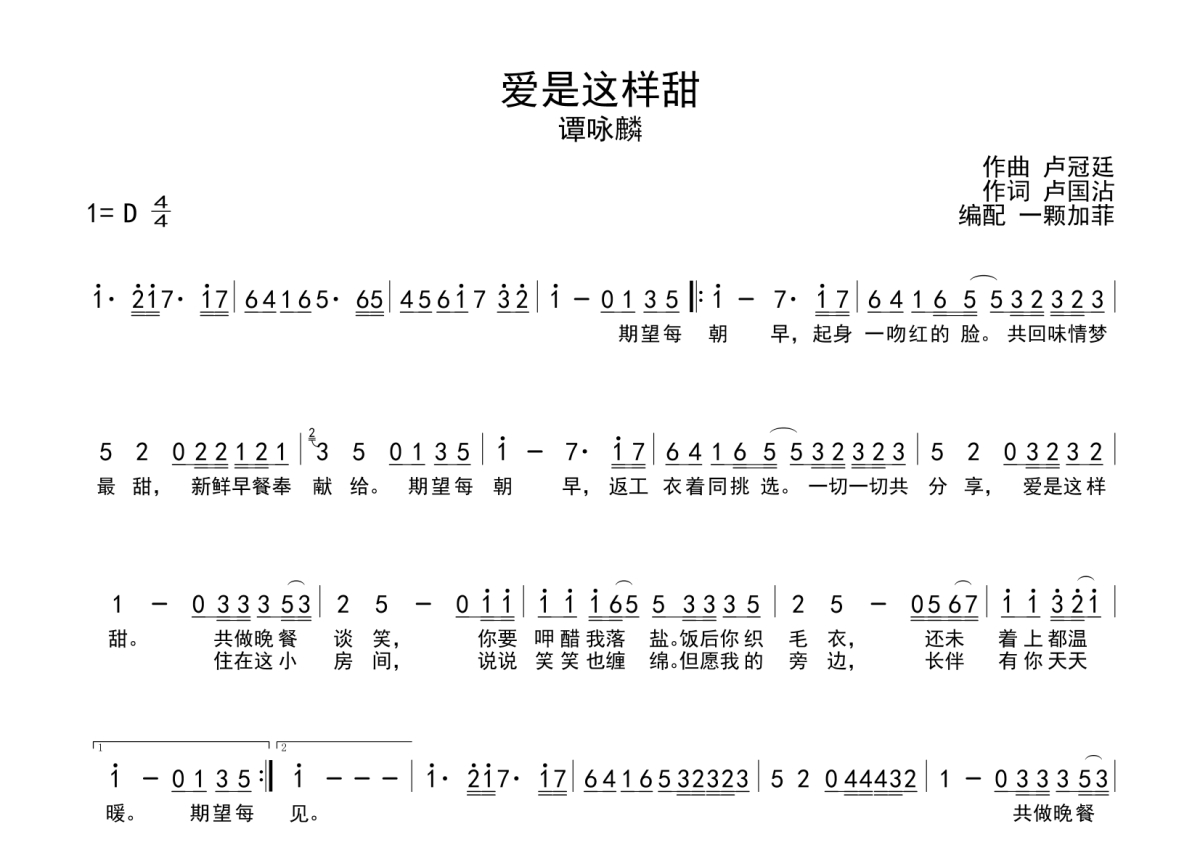 《爱是这样甜》是谭咏麟演唱的一首歌曲,这份简谱共有一张高清图谱,图谱由 @一颗加菲 编配上传。
