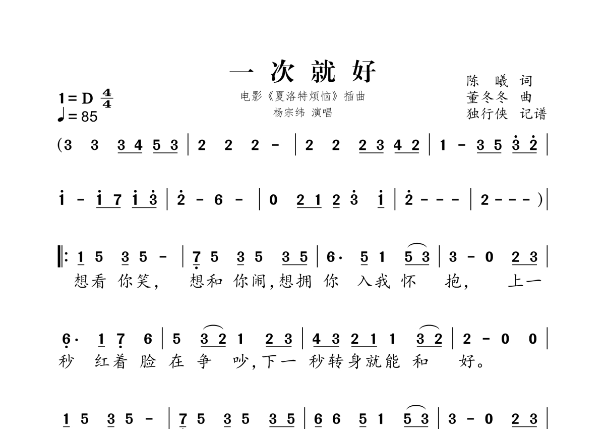 《一次就好》简谱 - 杨宗纬