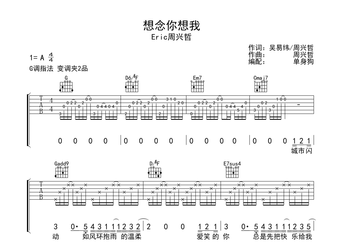 Eric周兴哲《想念你想我》吉他谱 - G调弹唱六线谱