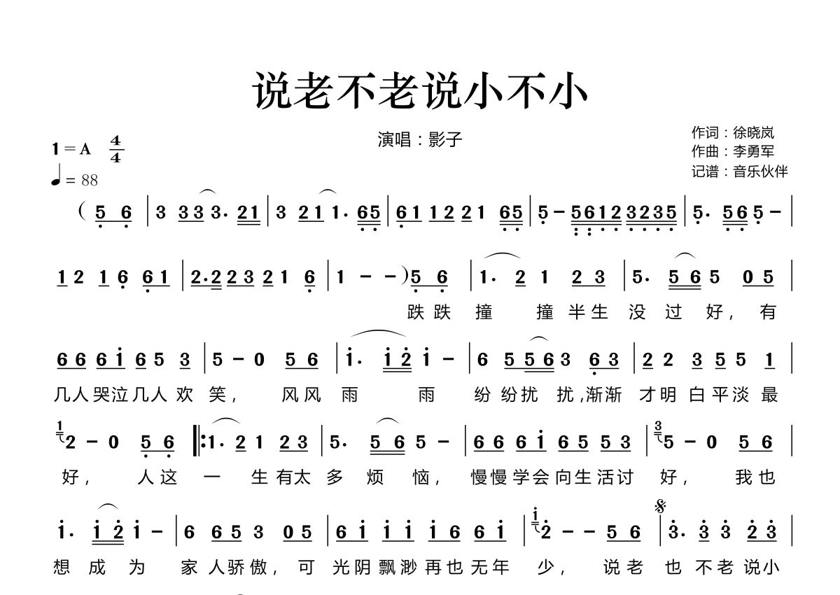 说老不老说小不小简谱 - 影子演唱