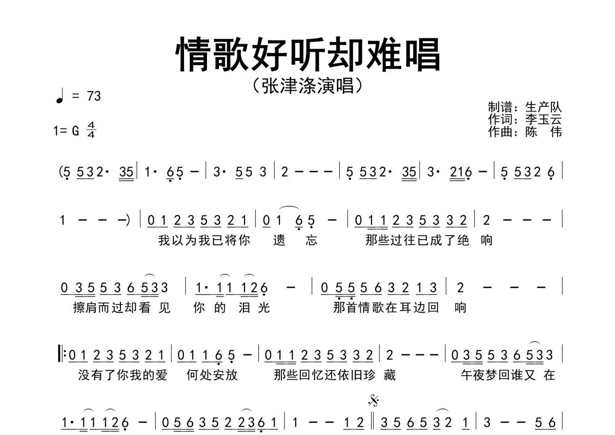 张津涤《情歌好听却难唱》简谱 - 原版简谱