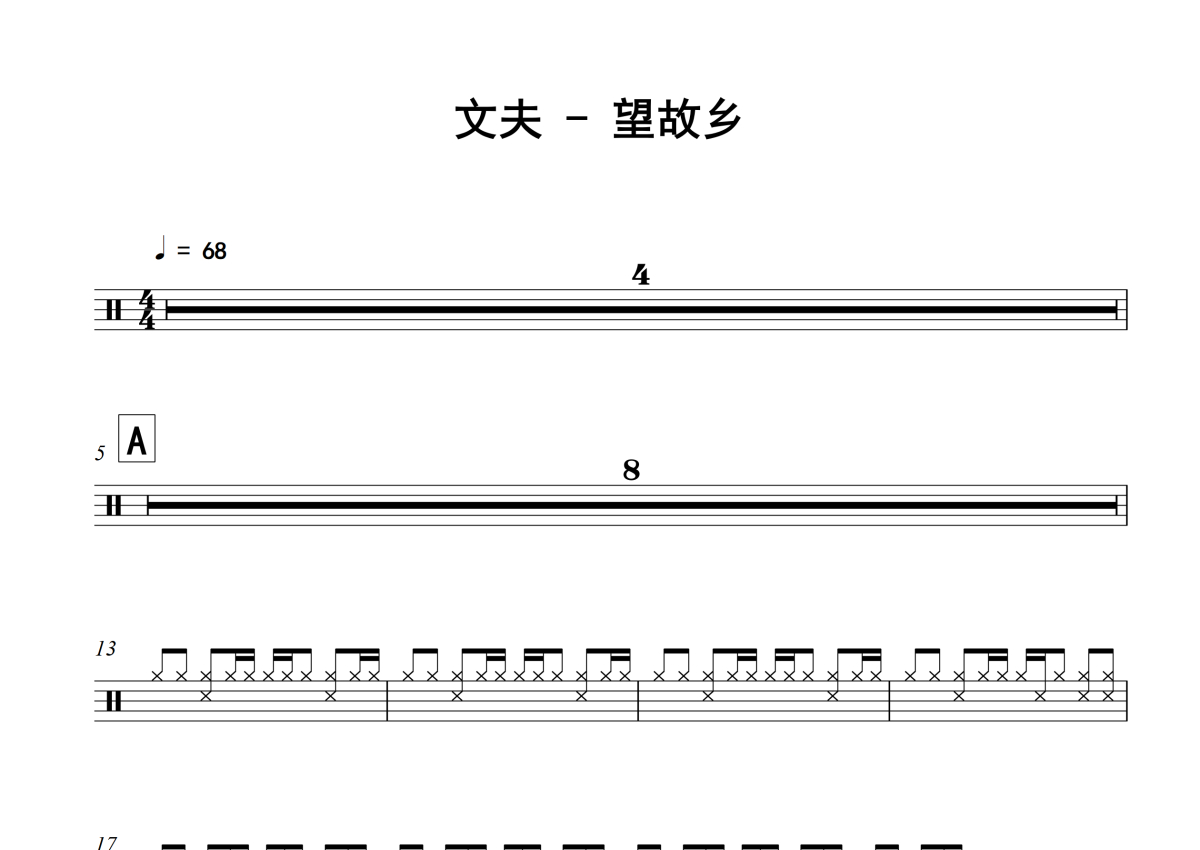 《望故乡》是文夫演唱的一首歌曲,拍号为4/4拍,歌曲速度为每分钟68拍,这份架子鼓谱共有两张高清图谱,图谱由 @老虎不说谎 编配上传,图谱使用五线谱编配,使用这份望故乡架子鼓谱,你将能够轻松地敲打出这首文夫的望故乡,快来尝试吧。