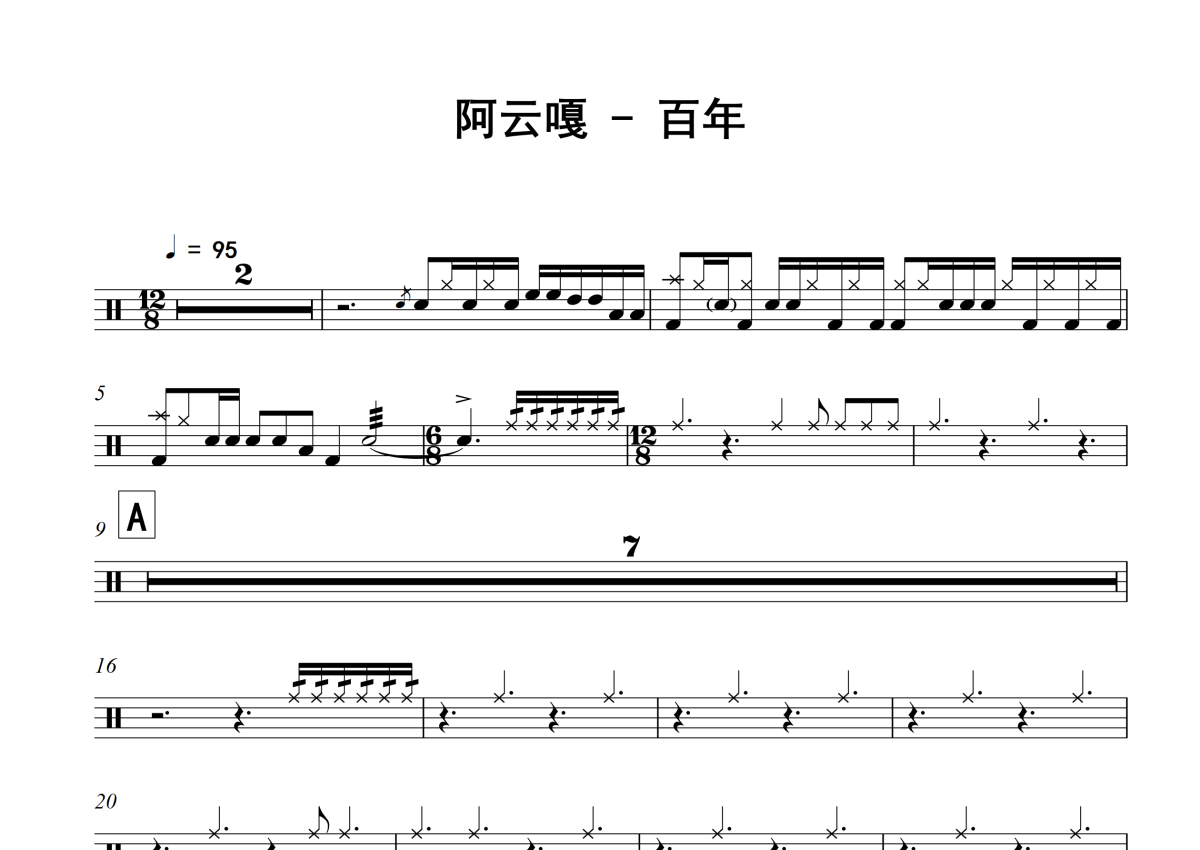 阿云嘎《百年》架子鼓谱