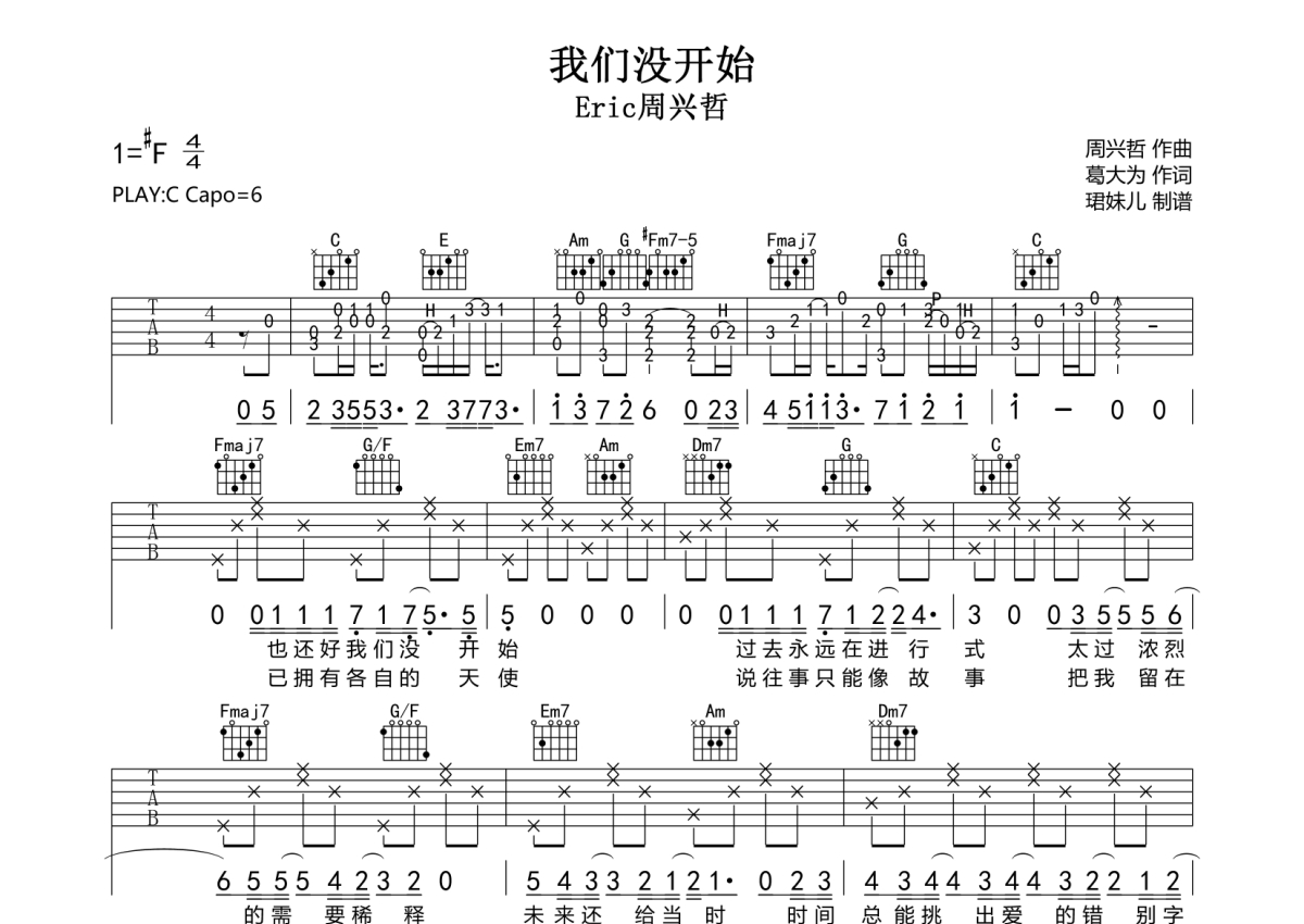 Eric周兴哲《我们没开始》吉他谱 - C调弹唱六线谱