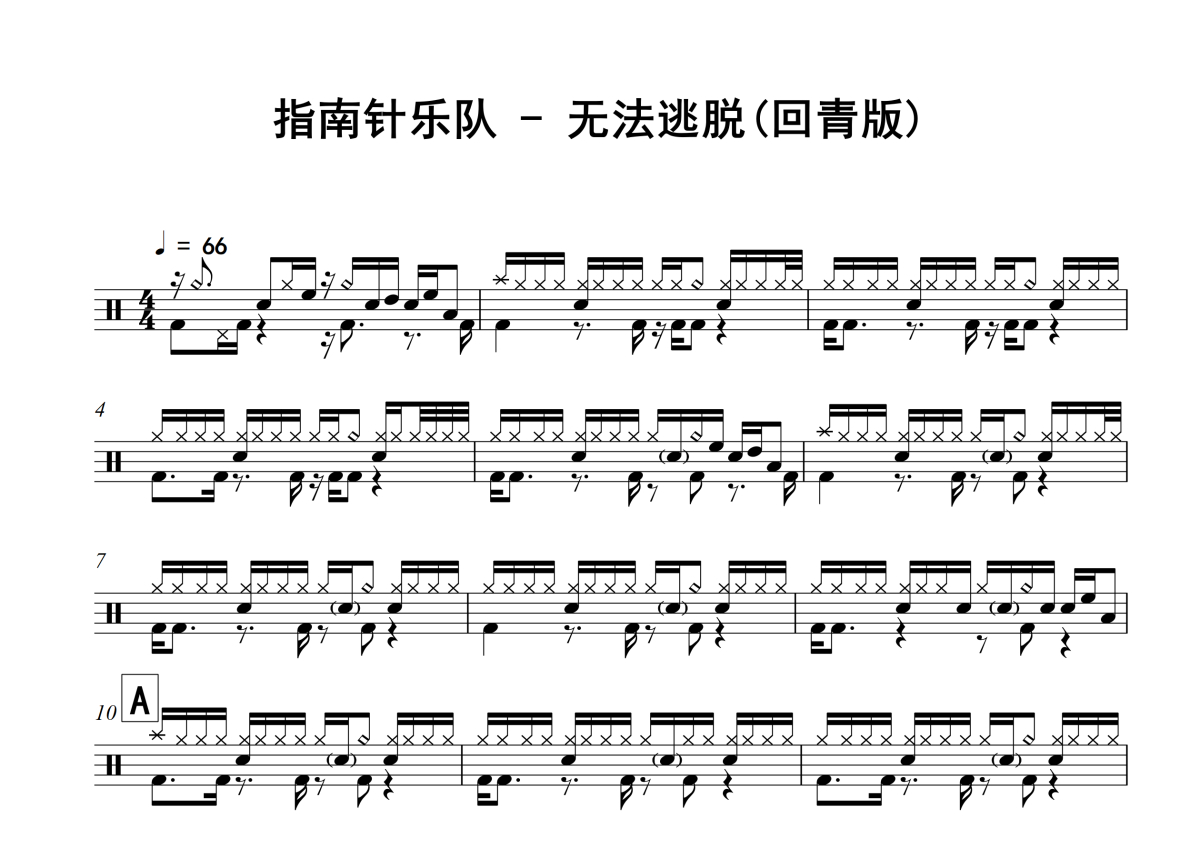 指南针乐队《无法逃脱》架子鼓谱 - 回青版