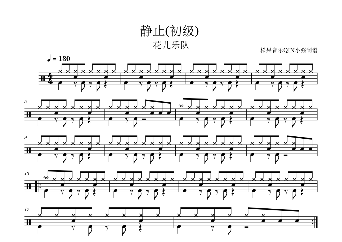 初级《静止》架子鼓谱 - (初级)