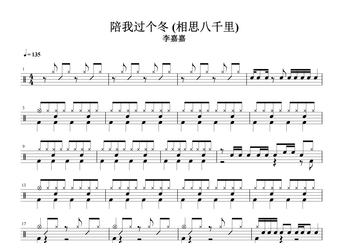 李嘉嘉《陪我过个冬(相思八千里)》架子鼓谱