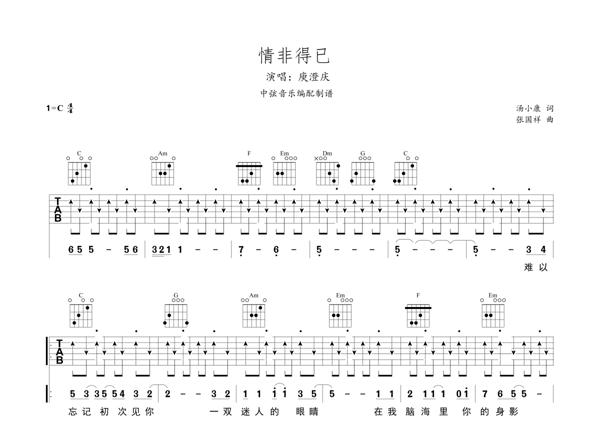 庾澄庆《情非得已》吉他谱 - C调弹唱六线谱