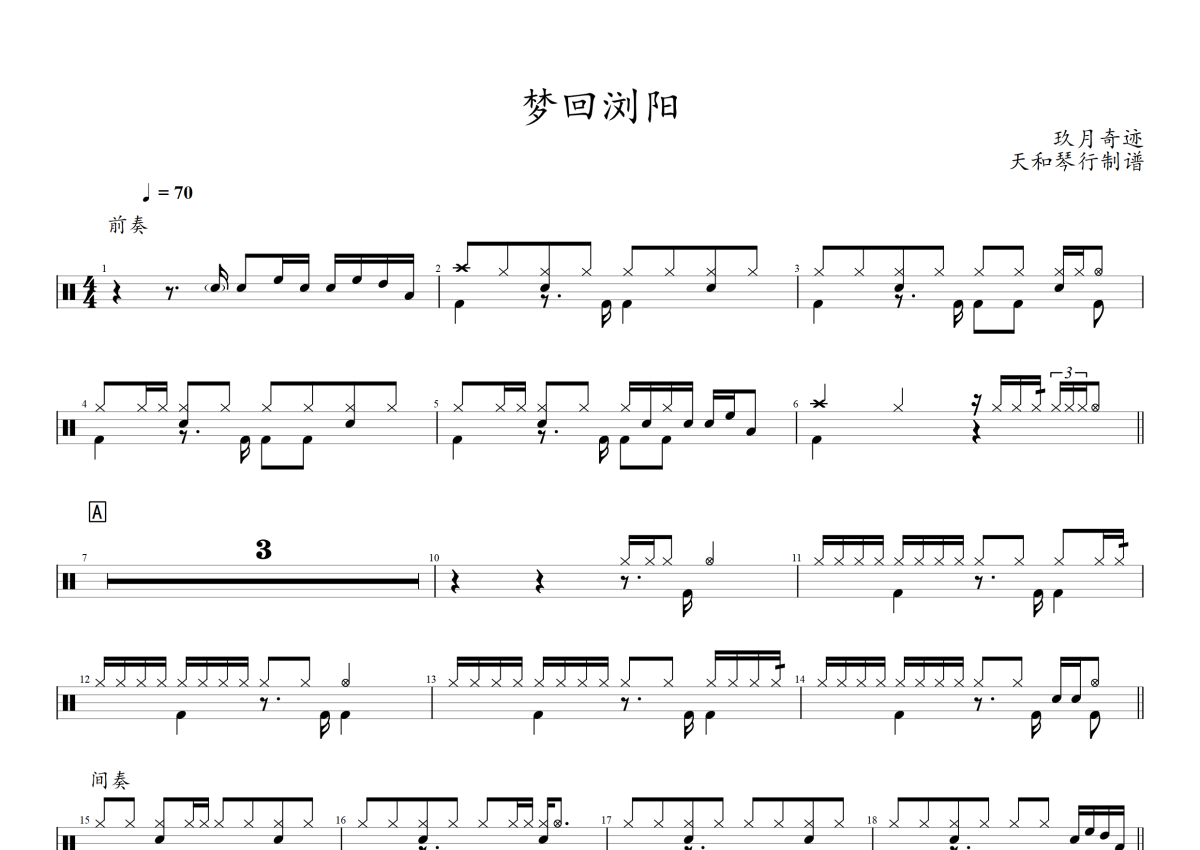 玖月奇迹《梦回浏阳河》架子鼓谱