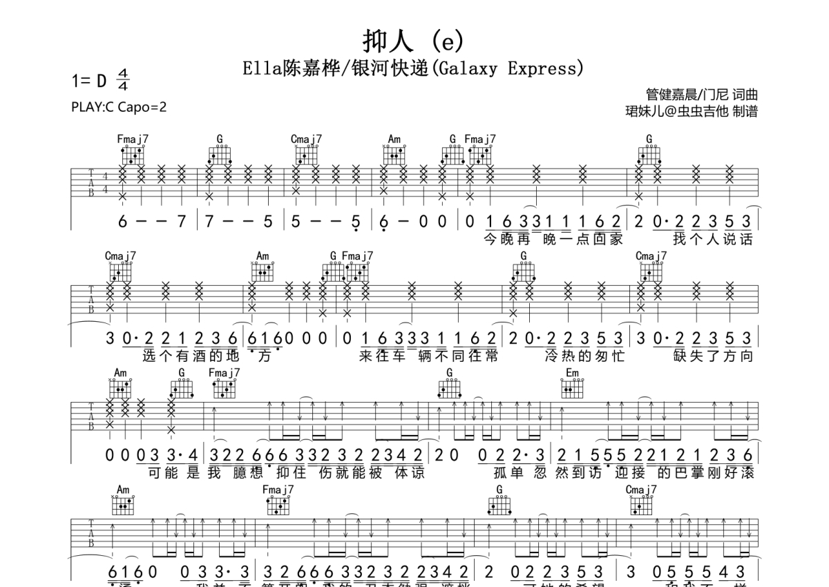 汪苏泷/门尼《哀人 (i)》吉他谱 - C调弹唱六线谱