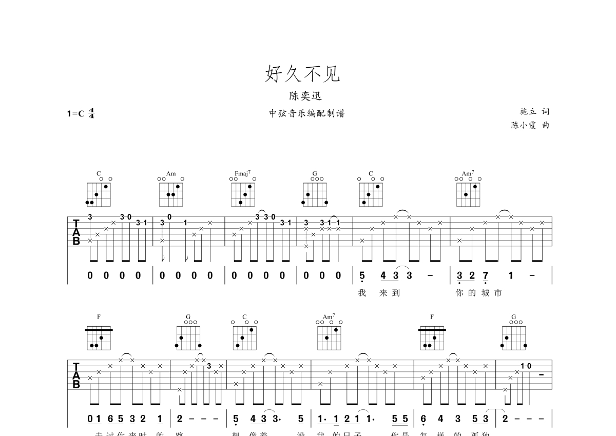 陈奕迅《好久不见》吉他谱 - C调弹唱六线谱