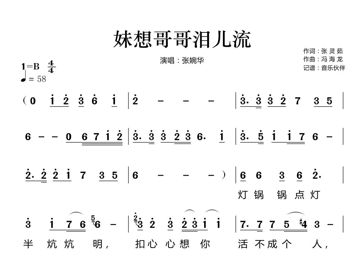 妹想哥哥泪儿流简谱 - 张婉华演唱