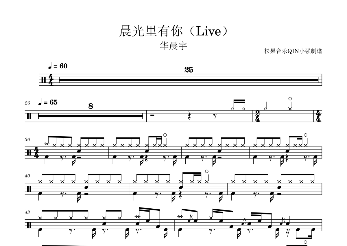 华晨宇《晨光里有你》架子鼓谱
