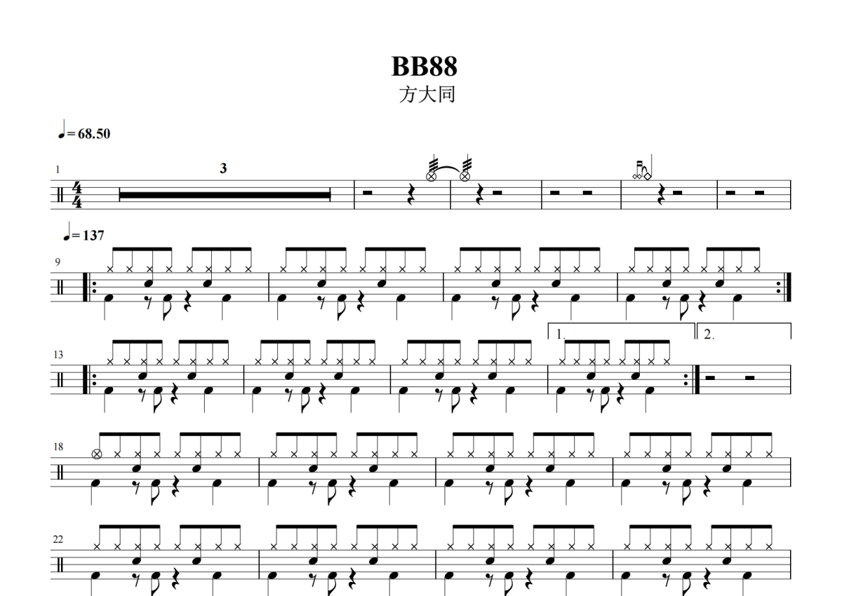 方大同《BB88》架子鼓谱
