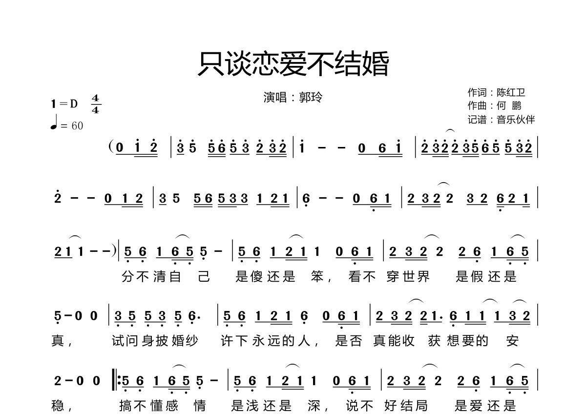 只谈恋爱不结婚简谱 - 郭玲演唱