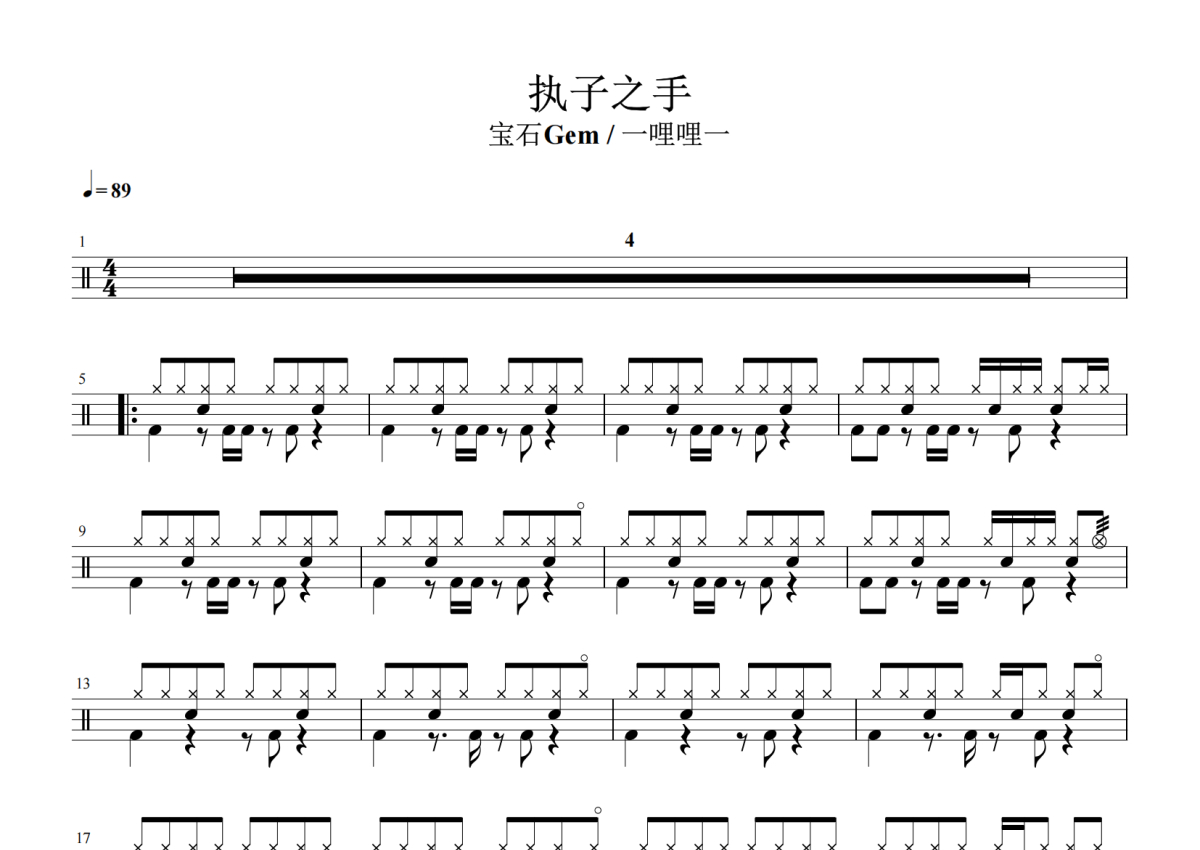 宝石Gem一哩哩一《执子之手》架子鼓谱