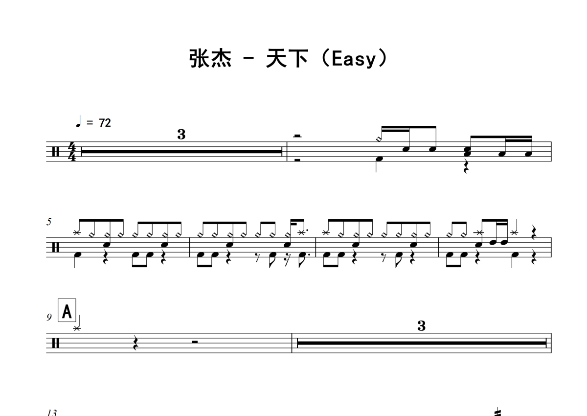 张杰《天下》架子鼓谱 - Easy