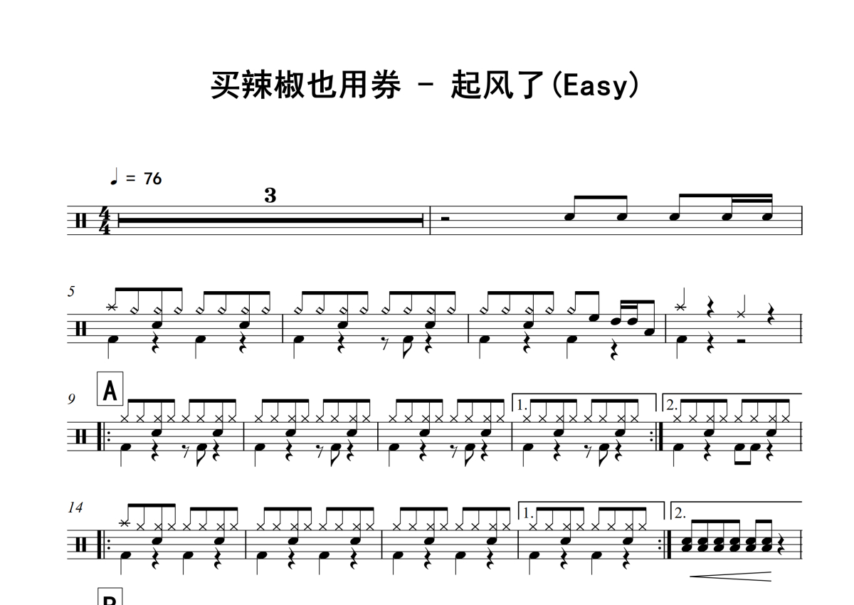买辣椒也用券《起风了》架子鼓谱 - Easy