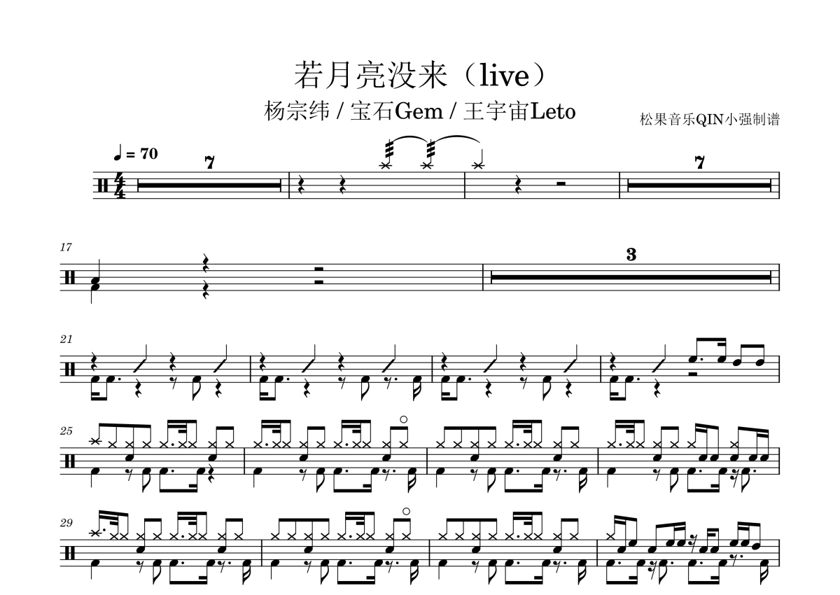 杨宗纬、宝石Gem、王宇宙Leto《若月亮没来》架子鼓谱