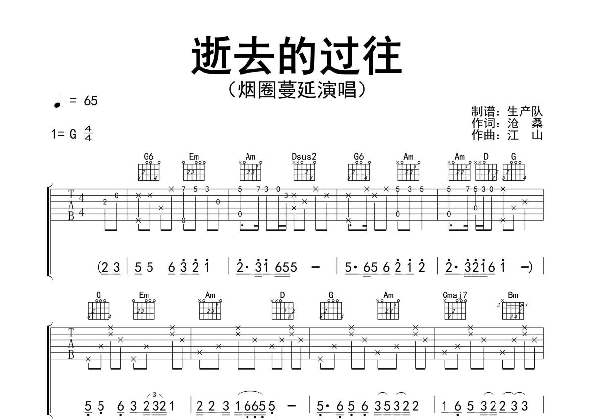 《逝去的过往》是烟圈蔓延演唱的一首歌曲,精编完美版,拍号为4/4拍,歌曲速度为每分钟65拍,歌曲原调为G调,本吉他谱采用的是G调指法编配,演奏时不需要使用变调夹即为原调,这份吉他谱共有三张高清图谱,图谱由 @生产队 编配上传,图谱使用六线谱编配,包含吉他和弦指法、简谱以及歌词部分,使用这份逝去的过往吉他谱,可以让你更加方便地掌握这首歌曲的弹唱技巧,快来尝试吧。烟圈蔓延演唱的歌曲《逝去的过往》原版吉他谱,完整的前奏、间奏、尾奏solo编配,精编完美版,值得推荐!。