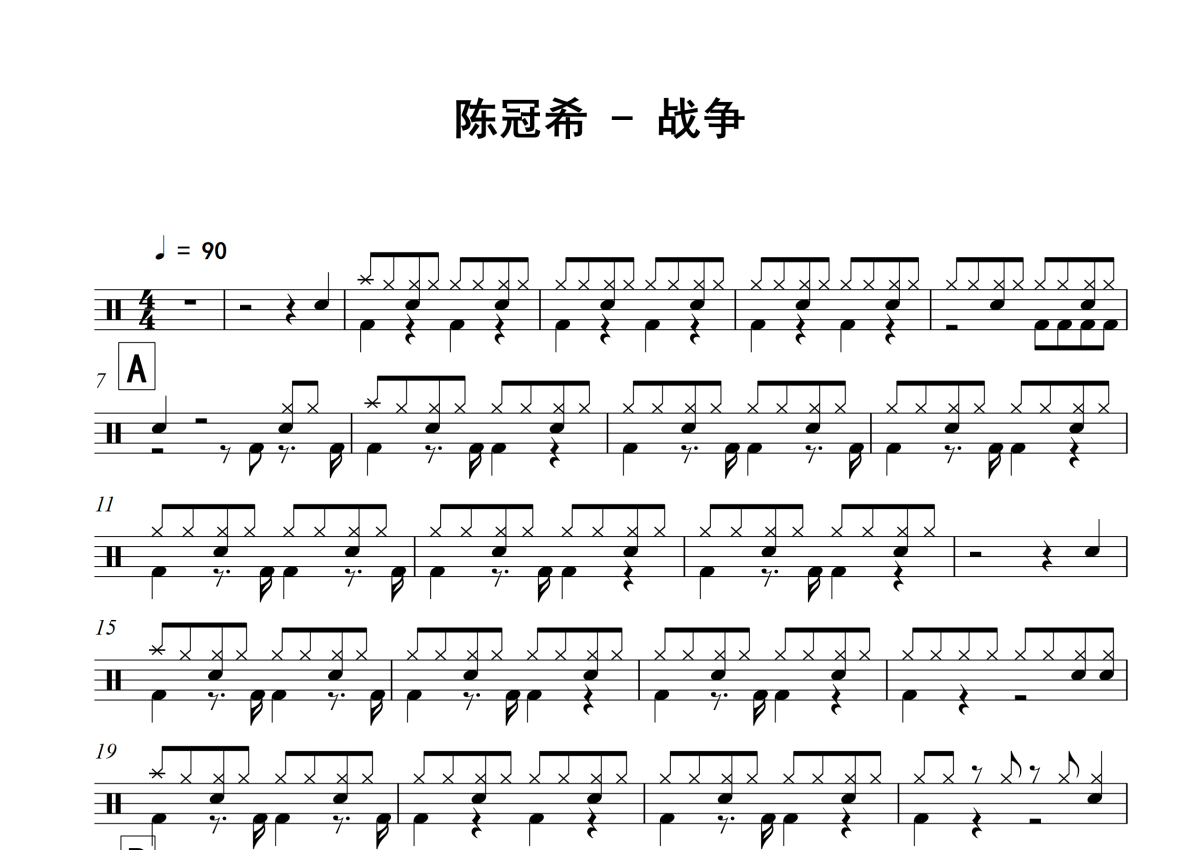 陈冠希《战争》架子鼓谱