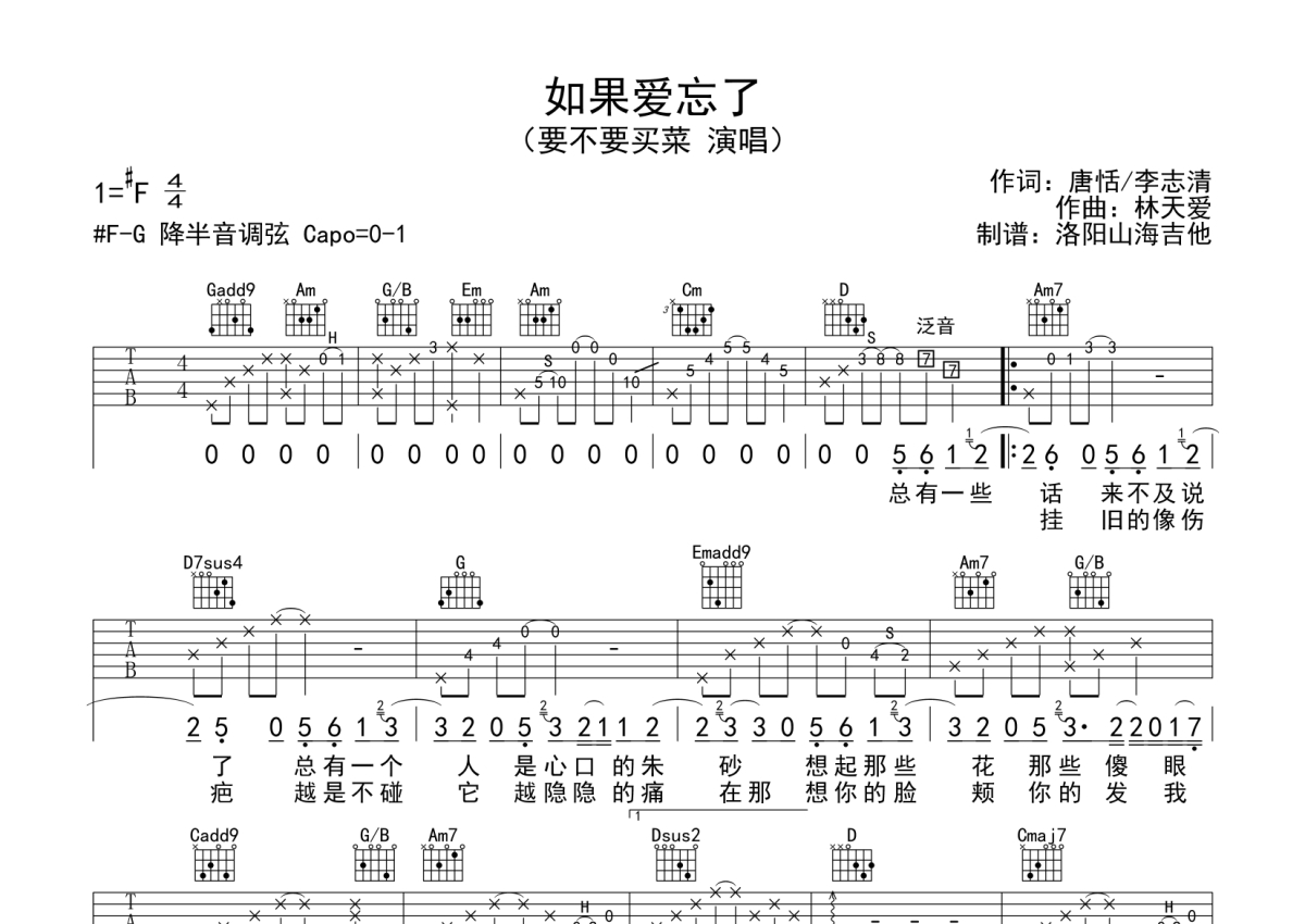 要不要买菜《如果爱忘了》吉他谱 - G调弹唱六线谱