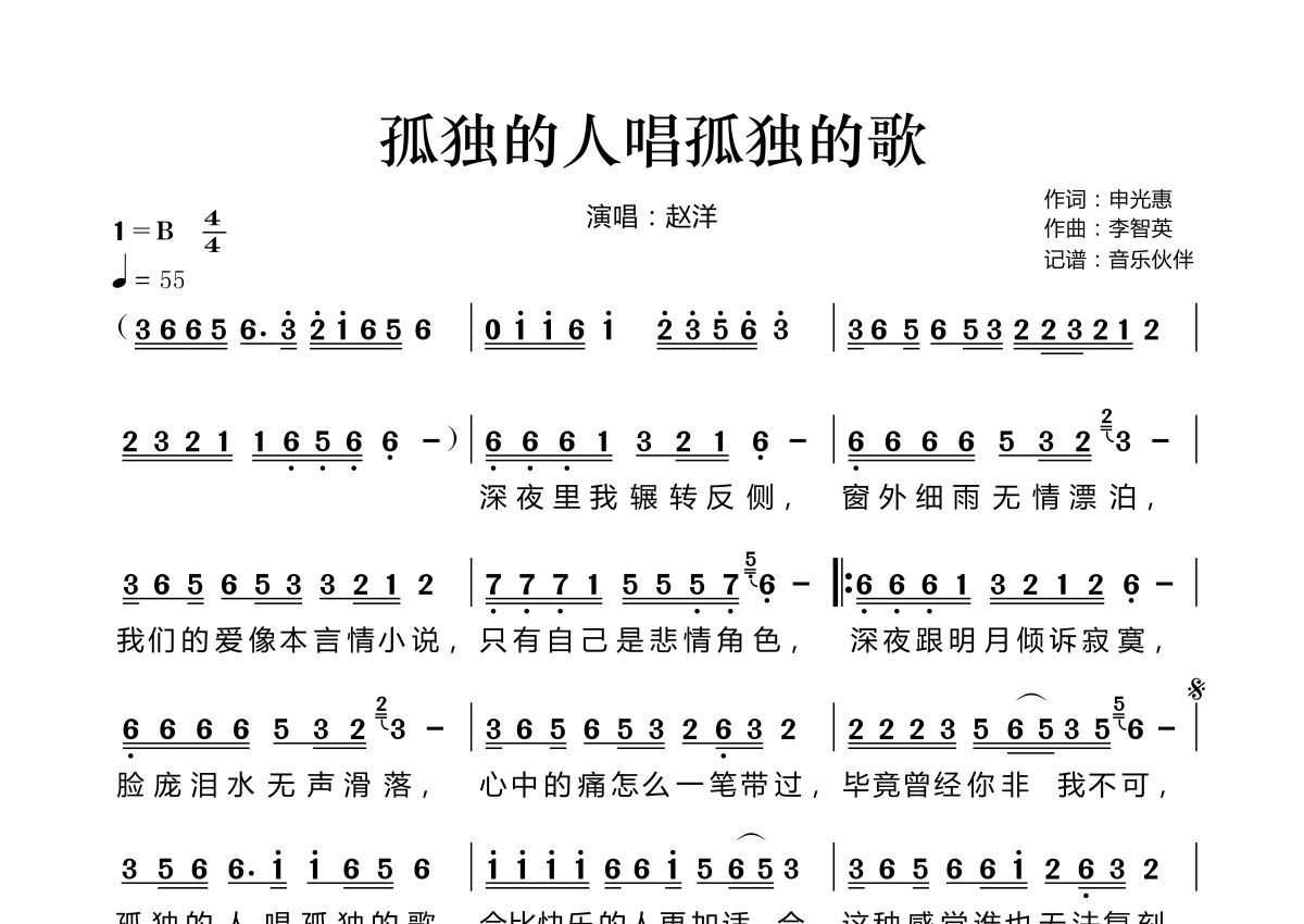 孤独的人唱孤独的歌简谱 - 赵洋演唱